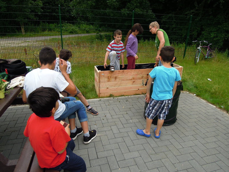 Im Rahmen unseres Engangements vor Ort in den Stadtvierteln Köln-Junkersdorf und Köln-Weiden bauten Naturpädagogen gmeinsam mit den Kindern und Jugendlichen des Wohnheims ein Hochbeet. Mit viel Spaß, Elan und Ausdauer wurde gesägt, gschraubt, zusammengebaut und anschließend das Beet bepflanzt.